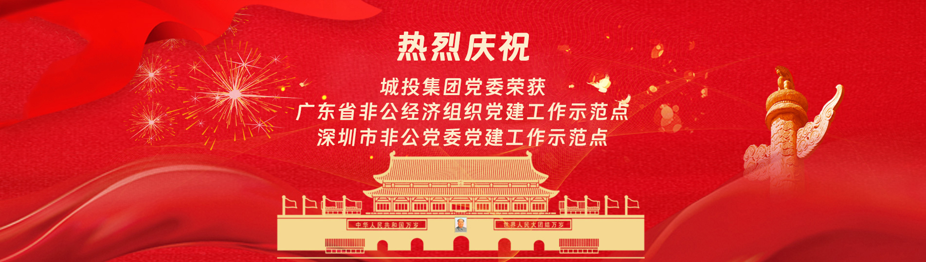 在上級(jí)黨委的正確領(lǐng)導(dǎo)下,在城投集團(tuán)的大力支持下,集團(tuán)黨委緊緊圍繞企業(yè)發(fā)展戰(zhàn)略,將黨建引領(lǐng)核心貫穿始終,以五心工程(即思政建設(shè)核心工程、經(jīng)營(yíng)發(fā)展中心工程、企業(yè)文化向心工程、黨建品牌匠心工程、服務(wù)基層愛心工程)為抓手,大膽探索,勇于突破和創(chuàng)新,不斷形成城投黨建特色,有效輸出城投實(shí)踐經(jīng)驗(yàn),充分發(fā)揮紅色引擎作用,先后獲得深圳市非公黨委黨建工作示范點(diǎn)深圳市兩新組織黨建工作示范點(diǎn)、深圳市文明單位、深圳市先進(jìn)基層黨組織、廣東省非公有制經(jīng)濟(jì)領(lǐng)域黨建工作示范點(diǎn)等榮譽(yù)稱號(hào)。